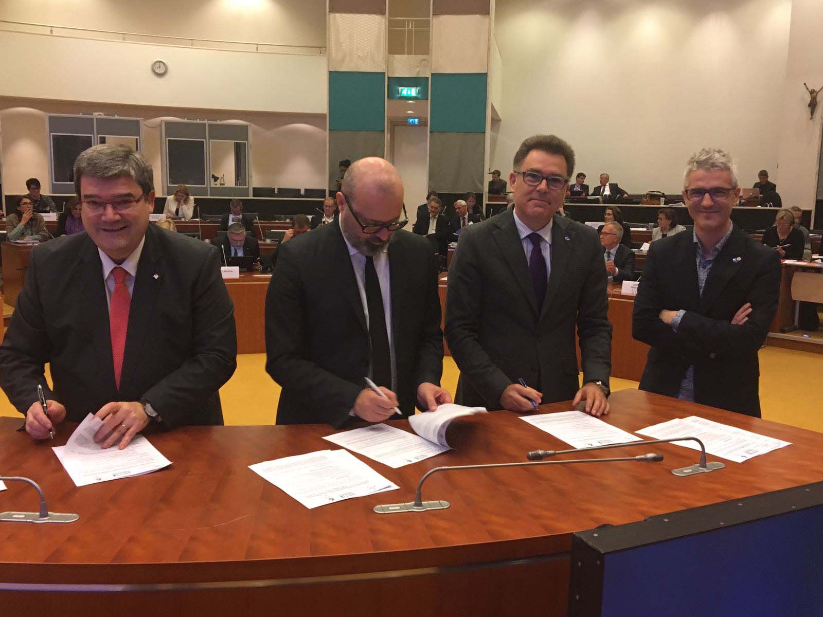 Maastricht, on 12th December 2016. This evening, Bilbao City Mayor, EUDEL President and today’s recently appointed President of European Municipalities and Regions-CEMR, Stefano Bonaccini, current of the Italian region of Emilia-Romagna, signed the agreement at 5 pm, in the city of Maastricht (provincial headquarters building in Limburg). The Italian regional leader was elected by 61 votes of the Policy Committee against the 34 votes obtained by the other candidate, Brussels Mayor, Yvan Mayeur.