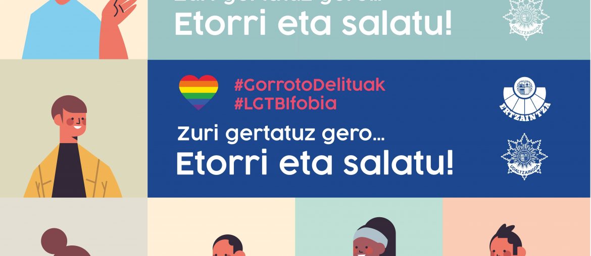 Kanpaina grafiko bat izango da, eta marraztutako 18 pertsonaiaren bidez herritarren aniztasuna irudikatuko da eta dei bat egingo da etnia, jatorria edo sexu-nortasuna edo orientazioa dela eta jazarpen-egoeran dauden edo egon diren pertsonek Ertzaintzara eta Euskadiko udaltzaingoetara jo dezaten eta sala dezaten.