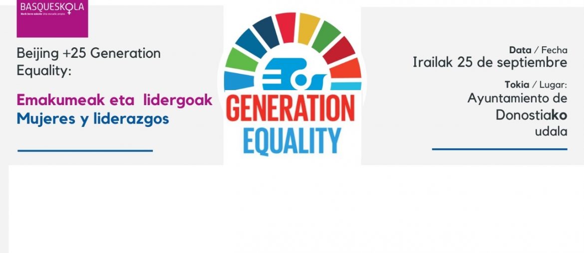 - “Virginia Woolf BASQUESKOLA” Euskal Udaletako Hautetsien Sareak Generation equality izeneko nazioarteko proiektuari buruzko lan-jardunaldia antolatu du larunbat honetan, irailaren 25ean, Donostian. Nazio Batuen Erakundeak diseinatu du proiektu hori, Beijingeko Emakumeen Asanbladaren hogeita bost urteen barruan.