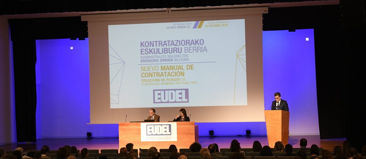 Bilbon, 2018ko urriaren 22an. “EUDELek udalekin egiten du lan, udal kudeaketa berritzeko asmoz, hurbilagoa eta eraginkorragoa bilakatuta”. Orain, eskuragai jarri dugu administrazio-izapideak errazteko eta kontratazio-prozesuetan segurtasun juridiko handiagoa emateko tresna berria. Kontratazioa funtsezko gaia da udalen jardueran, eta ezinbestekoa da herritarrei kalitate goreneko zerbitzuak eman ahal izateko”. Horrela aurkeztu du gaur Imanol Landa elkarteburuak EUDELen Administrazio Kontrataziorako Eskuliburuaren 2018ko edizio gaurkotua, erreferentzia-materiala izan dena Euskadiko udalentzat duela 20 urte baino gehiago.