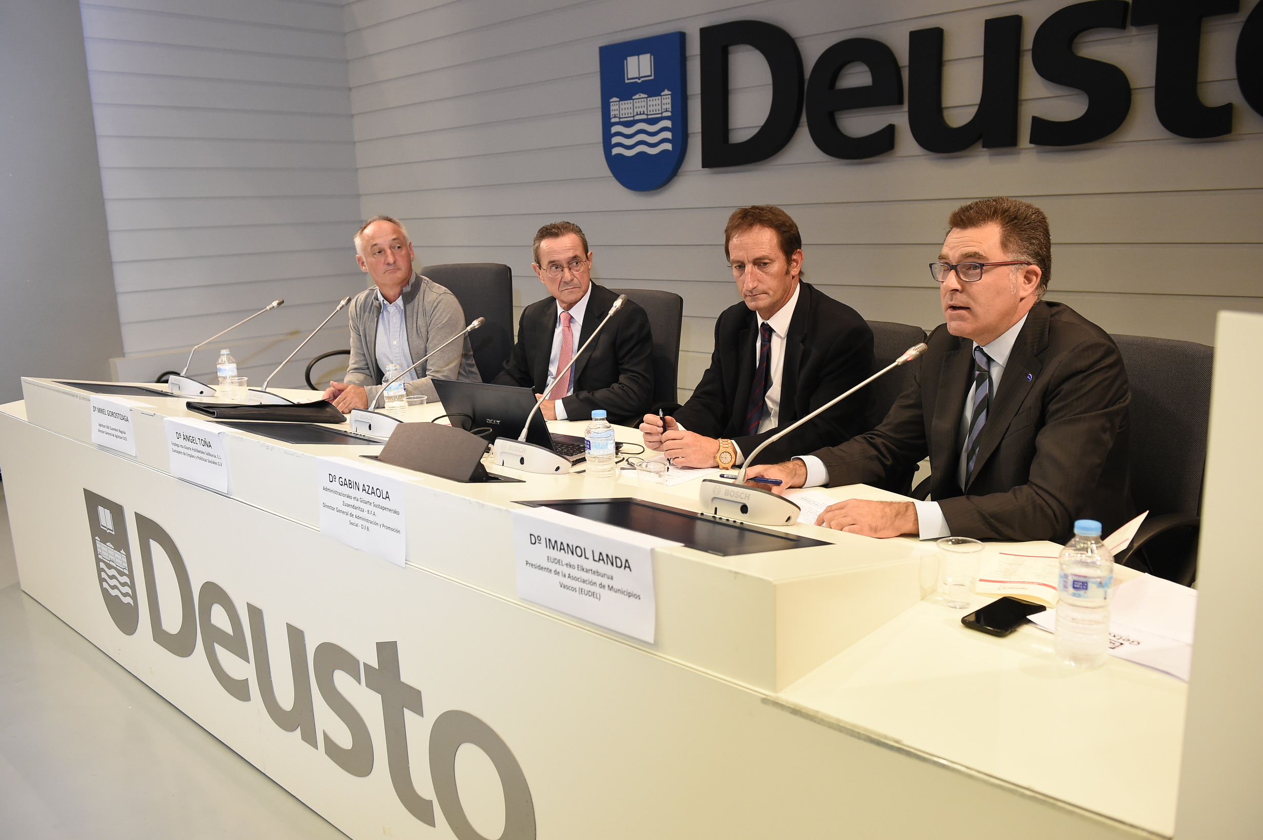 Euskadiko Udalen Elkarteko ordezkaria Eusko Jaurlaritzako Enplegu eta Gizarte Gaietako sailburu Angel Toñarekin, Bizkaiko Foru Aldundiko Administraziorako eta Gizarte Sustapenerako zuzendari Gabin Azaolarekin eta Agintzariko zuzendari nagusia, Mikel Gorostizagarekin batera egon da mahaian.
