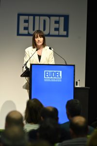 Batzarreko bere hitzaldian, EUDELeko elkarteburuak “tokiko lidergoa” euskal gizartearen zerbitzura jartzeko deia egin die euskal udalei, “erakundeen lankidetzatik, transakzio handietan, sozial-demografiko, digital, ekologiko eta feministetan laguntzeko”.