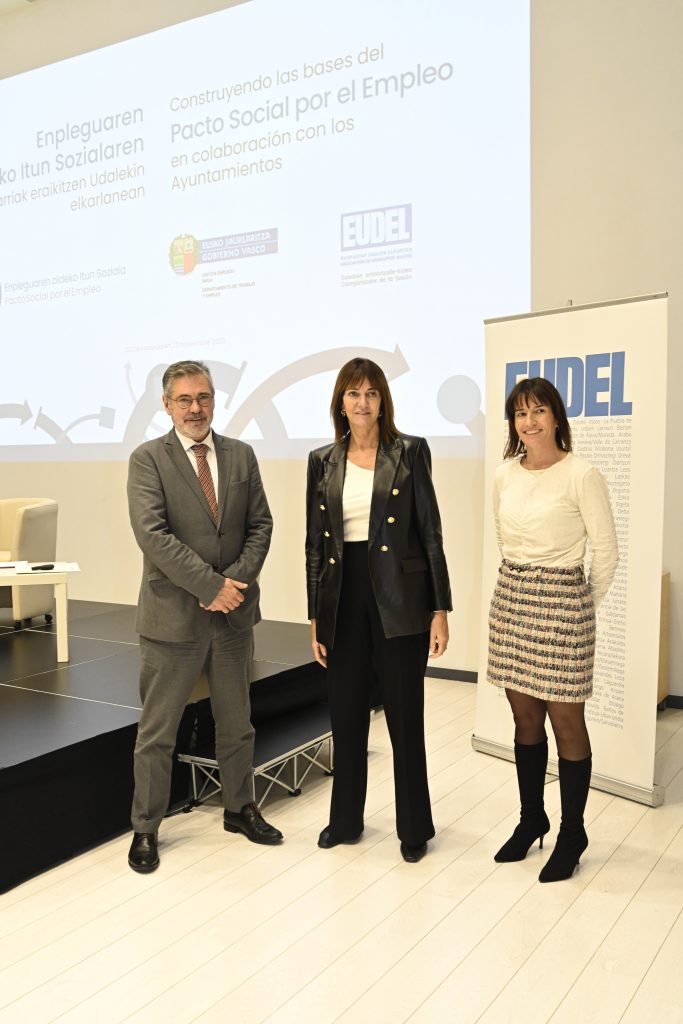 Gaur goizean Enpleguaren aldeko Itun Soziala aurkeztu zaie euskal udalei, Eusko Jaurlaritzako Lan eta Enplegu Sailak, EUDEL-Euskadiko Udalen Elkartearekin lankidetzan, Gasteizko Europa Jauregian antolatutako bilera batean.