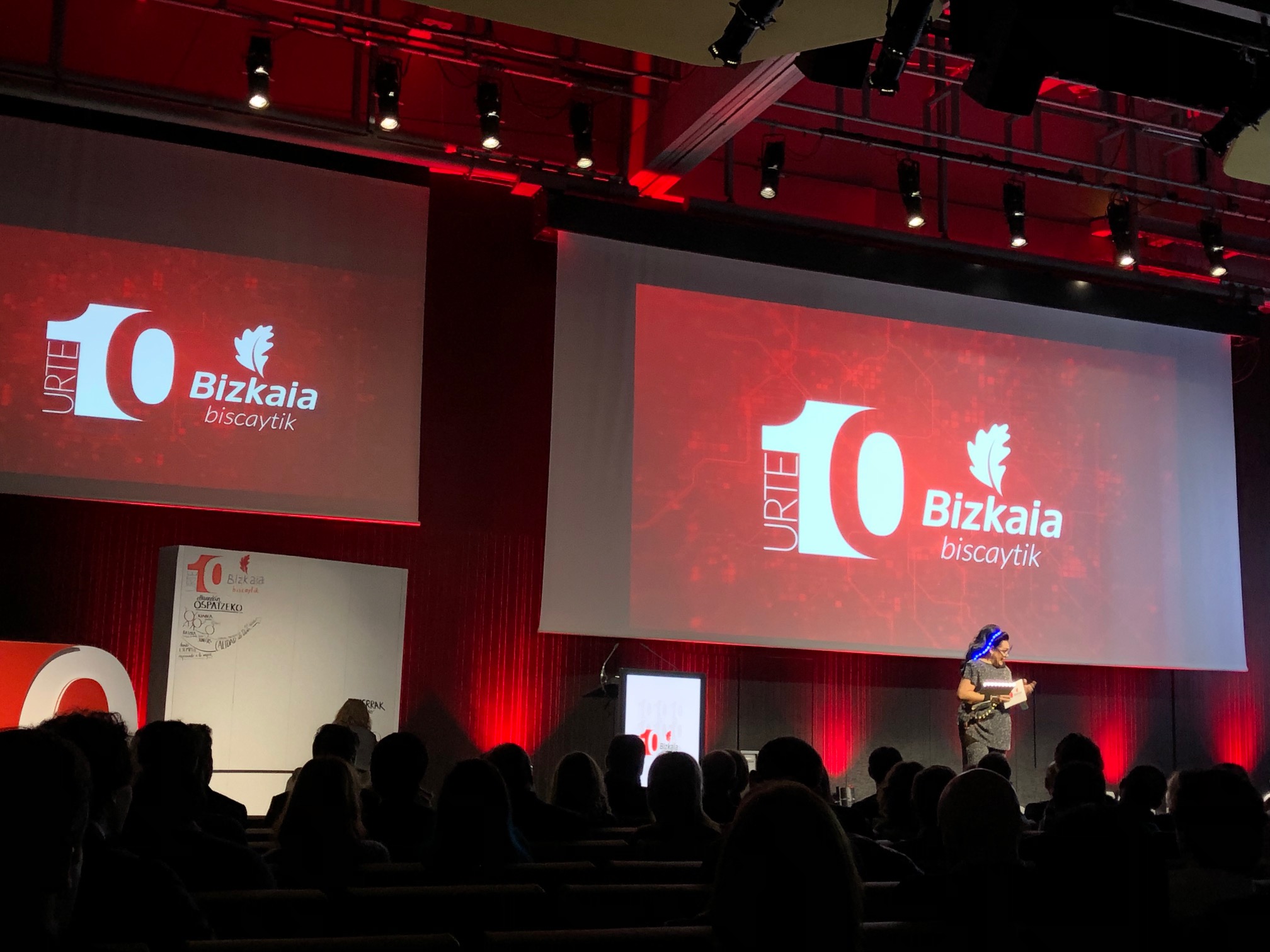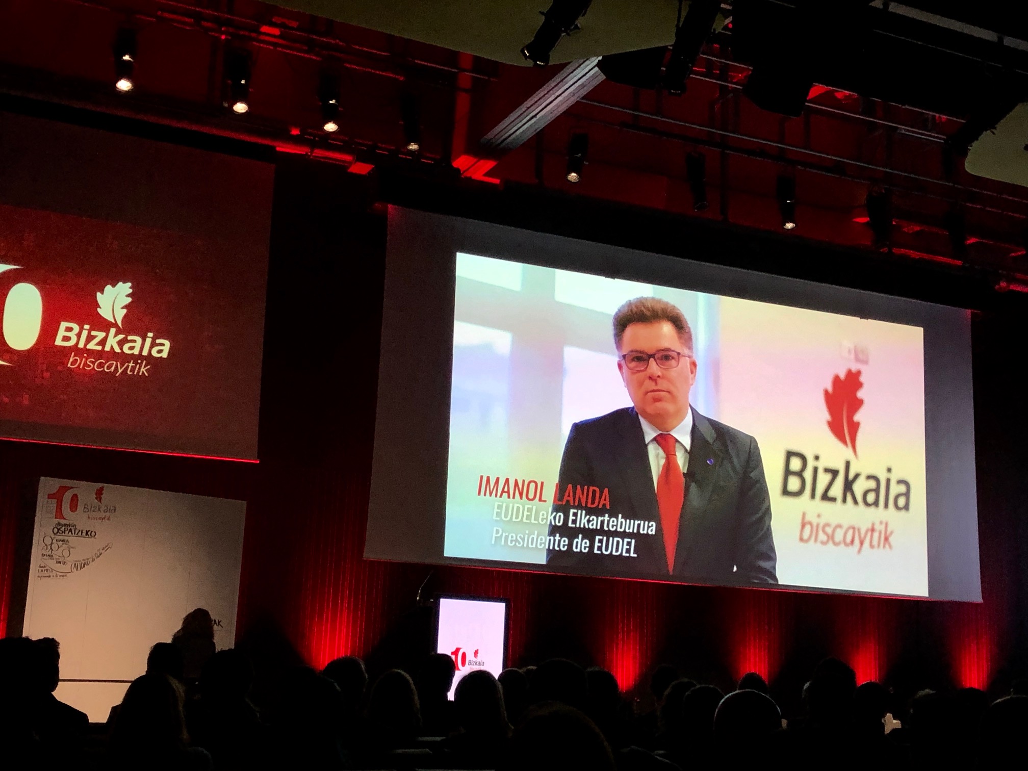 Ekitaldian, bideo bidezko mezuak ikusi dira, BiscayTIKekin, hamar urte hauetan zehar, elkarlanean aritu diren erakunde eta eragileek bidalitakoak. Zoriontze-mezuen artean izan da EUDELen elkarteburuarena ere; lurralde osoko udalen izenean hitz egin du.