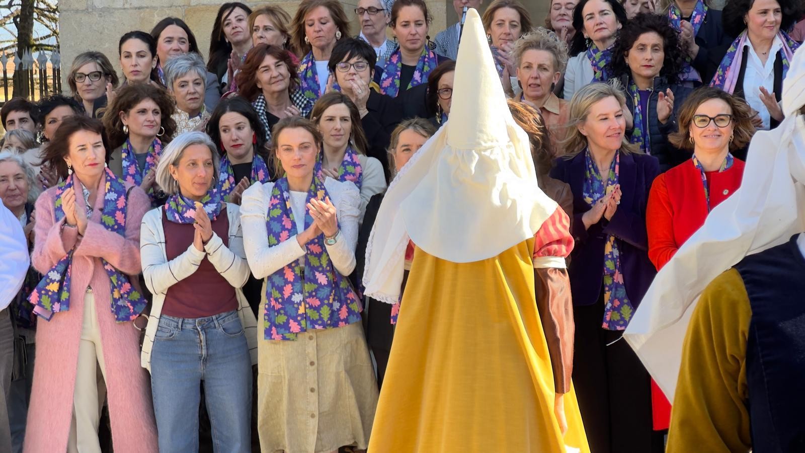 Aintzatespen-ekitaldiak beste batzuetako liturgiari jarraitu deutso. Emakumeen eta gizonen arteko bardintasunean aurrera egiteko jai eta aldarrikapen giroan, Bizkaiko Batzar Nagusiek eta Euskadiko Udalen Elkarteak (EUDEL) antolatutako Batzarra Gernikako Arbolaren ondoan hasi da. Ana Otadui Biteri Bizkaiko Batzar Nagusietako Lehendakaria, Elixabete Etxanobe Landajuela Bizkaiko Ahaldun Nagusia, Batzar Nagusietako Mahaiko kideak, Esther Apraiz Fernández la Peña EUDELeko elkarteburua, Miren Elgarresta Larrabide Emakundeko zuzendaria eta omenaldia jaso daben emakumeak, askatasuna eta bardintasuna sinbolizetan daben oroimeneko zapiakaz alkartuta sartu dira hemizikloan.