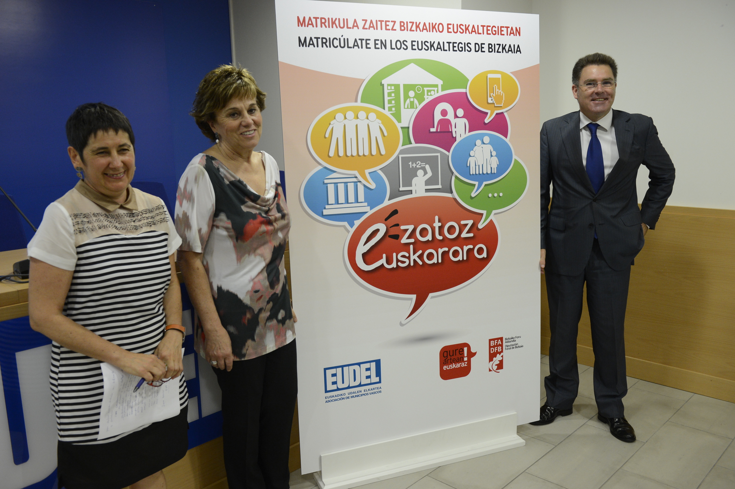 Bizkaiko Foru Aldundiak eta EUDELek Zatoz euskarara kanpaina aurkezten dute 2013-2014 ikasturteko matrikulazioa Bizkaiko euskaltegietan bultzatzeko. Ildo beretik, euskaltegietan arian-arian euskalduntzen diren herritar eta gizatalde guztiei euskara euskaltegitik kanpo gizarte-arlo guztietan erabiltzeko gonbita luzatuko diete eragileek.