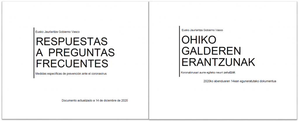 “Ohiko galderen erantzunak” dokumentu eguneratua (azaroaren 17ko bertsioa), 38/2020 Dekretuaren interpretazio-irizpideei buruzkoa, ostalaritza-zerbitzuen inguruko gaiak barne hartzen direla. Ohiko Galdera-erantzunen dokumentua Ostalaritza-zerbitzuen inguruko…