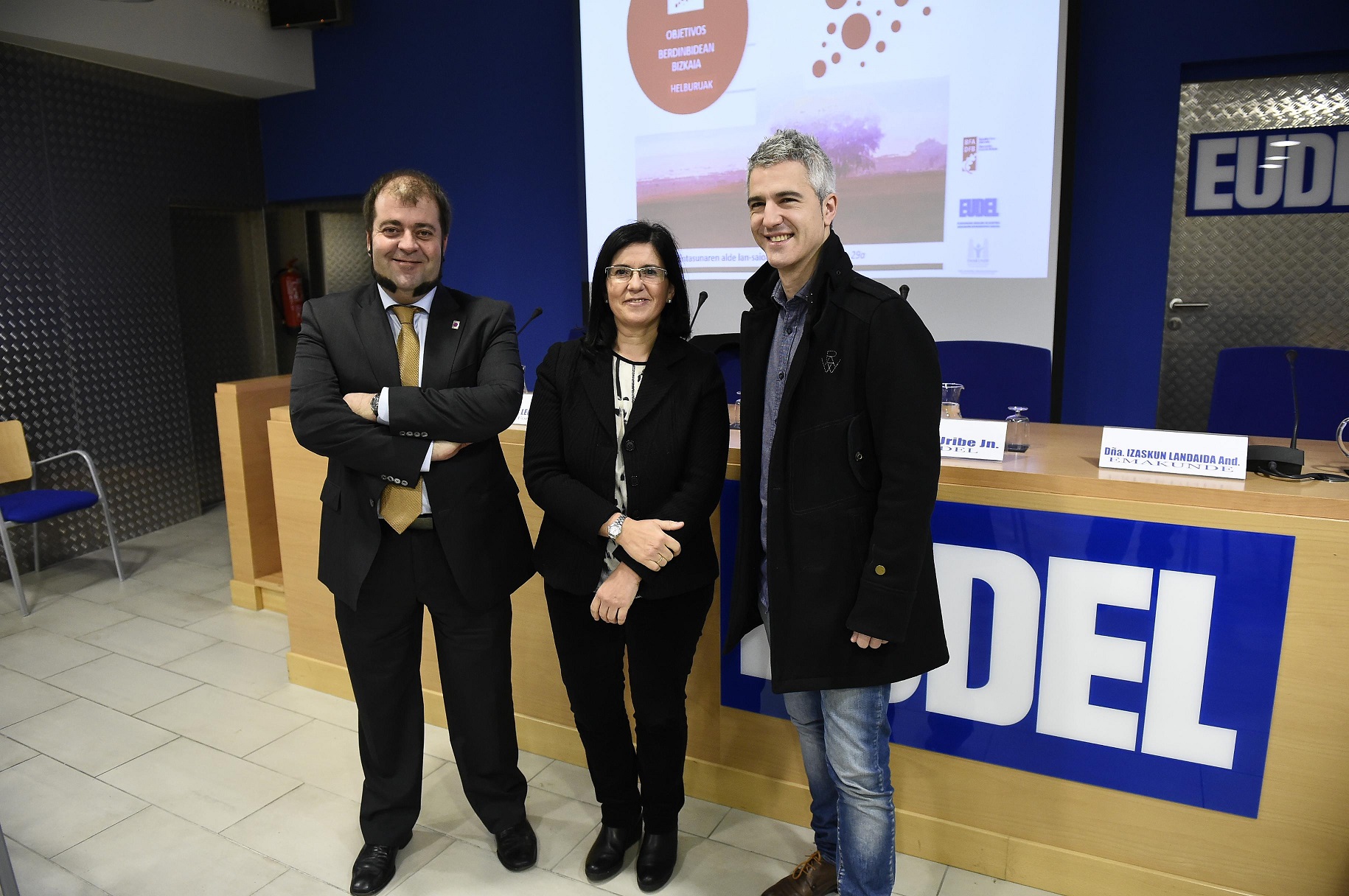 Bilbon, 2015eko urtarrilaren 29an. Berdintasun arloko hainbat teknikari eta politikari elkartu dira gaur EUDELen Bilboko egoitzan, ‘Berdinbidean Bizkaia’ sarea osatzen duten udal eta mankomunitate guztien arteko lan-topaketan parte hartzeko, udalerri txikietako berdintasun arloko tokiko politikak sustatu eta garatzeko asmoz. Gaur egun, sarea oso zabala da, eta bertan bilduta daude Bizkaiko udalerri txiki guztiak (5.000 biztanletik beherako 79 udalerri) eta 7 mankomunitate.