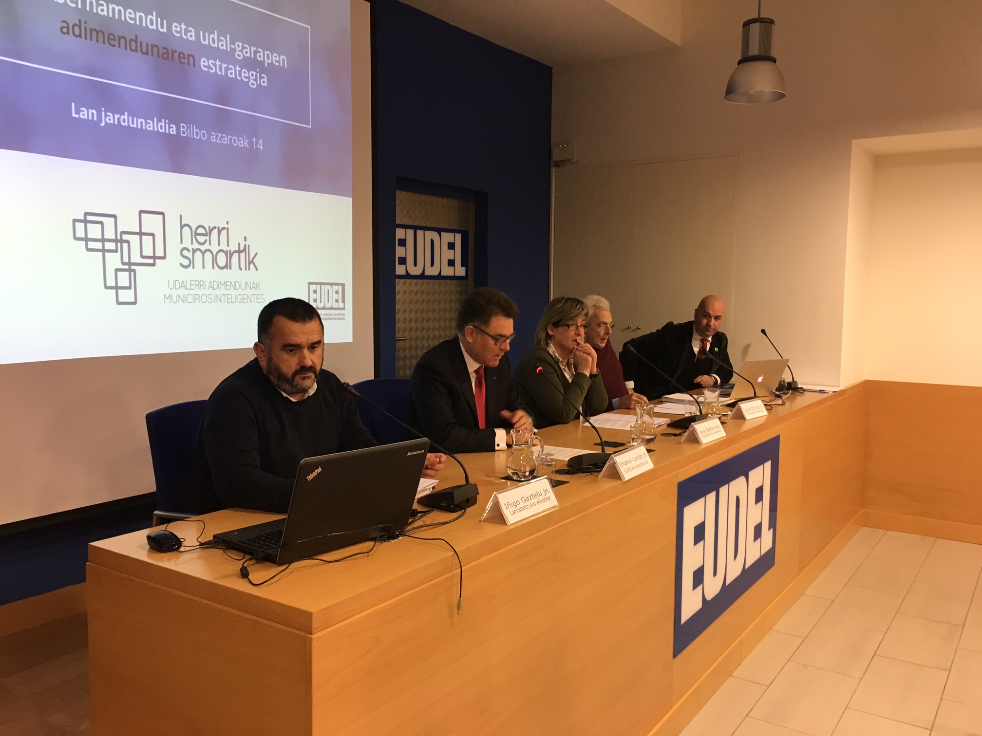 50 politikari eta teknikariren aurrean, Imanol Landa elkarteburuak eta EUDELeko Berrikuntza Batzordeko alkateek (Elgoibar, Ermua, Larrabetzu eta Zambrana) lau ekintza-lerro garrantzitsuenak aurkeztu dituzte, udalei, tamaina eta abiapuntua edozein delarik ere, tokiko euskal administrazioa modernizatzen laguntzeko. Honen bidez egingo da: 1) antolaketa-eraldaketa eta aldaketa kulturala 2) administrazio elektronikoa 3) Gobernantza ona eta etorkizunari begirakoa, 4) ‘lurralde/udalerri adimendunen’ sistema sarean.