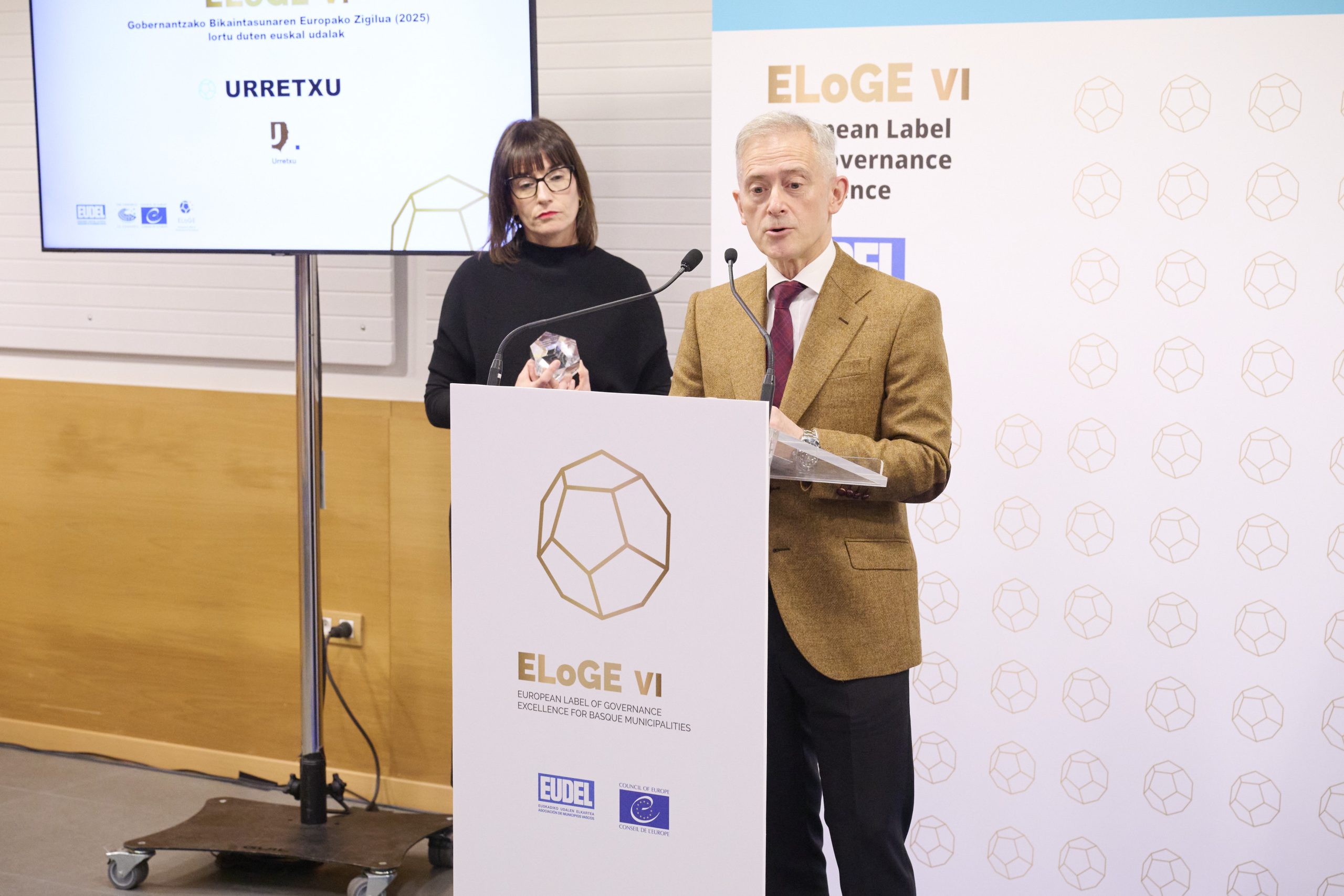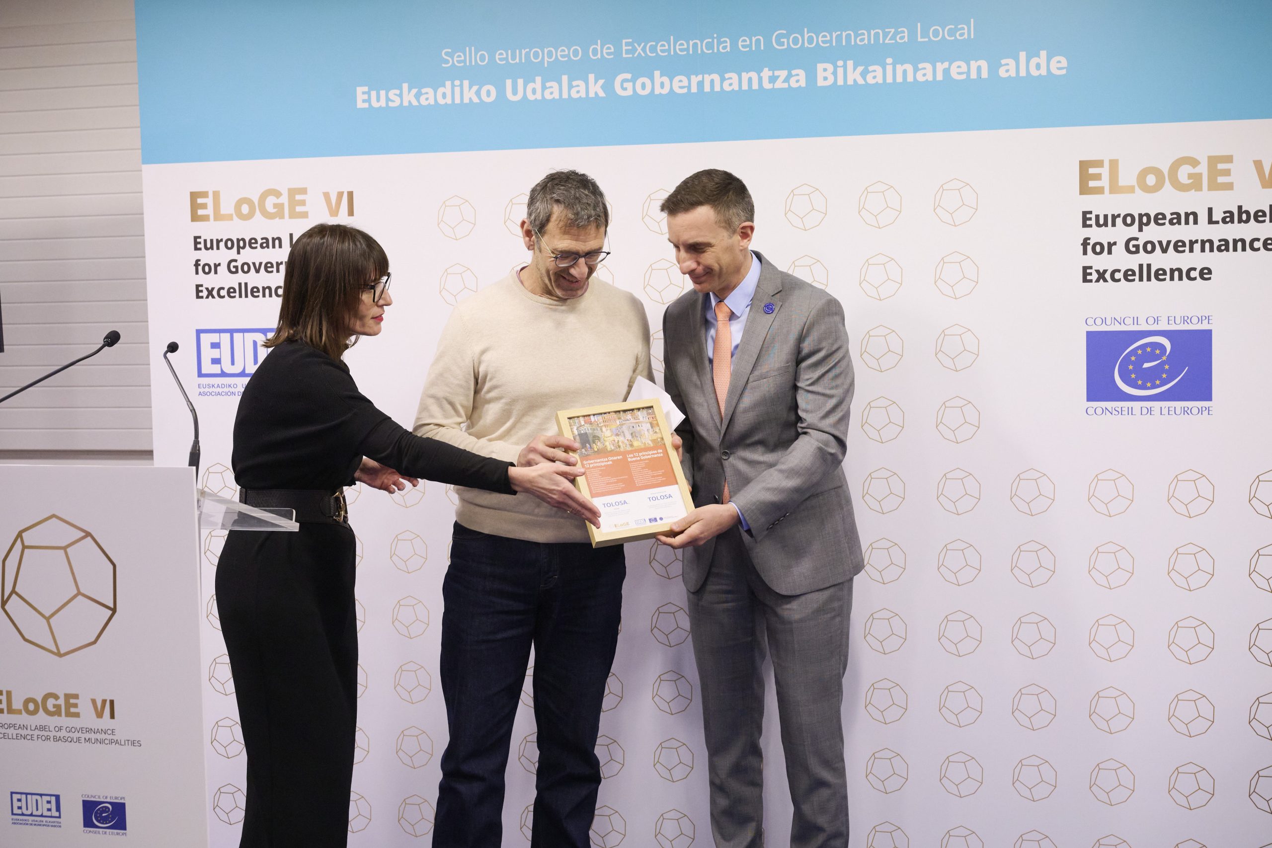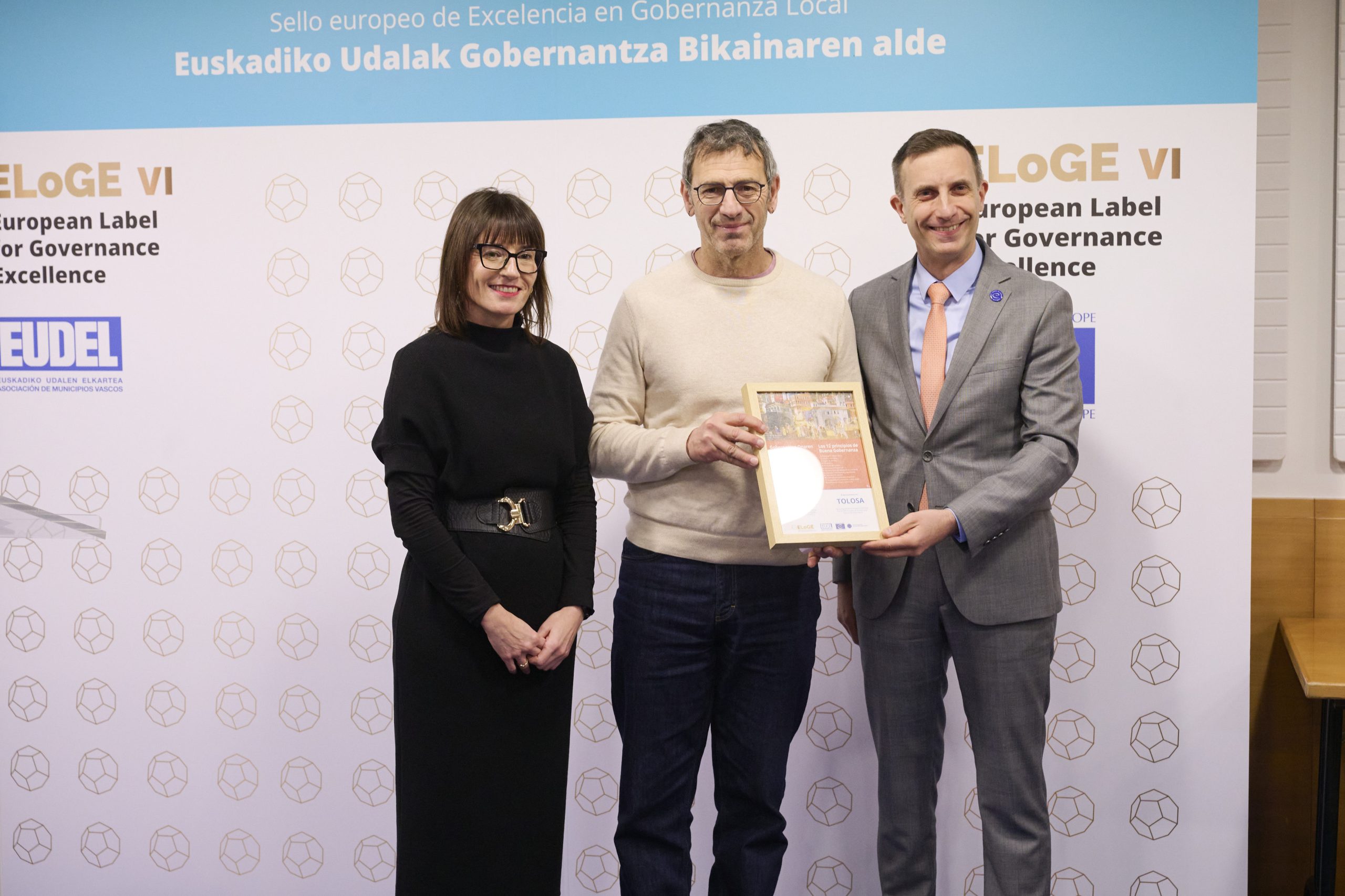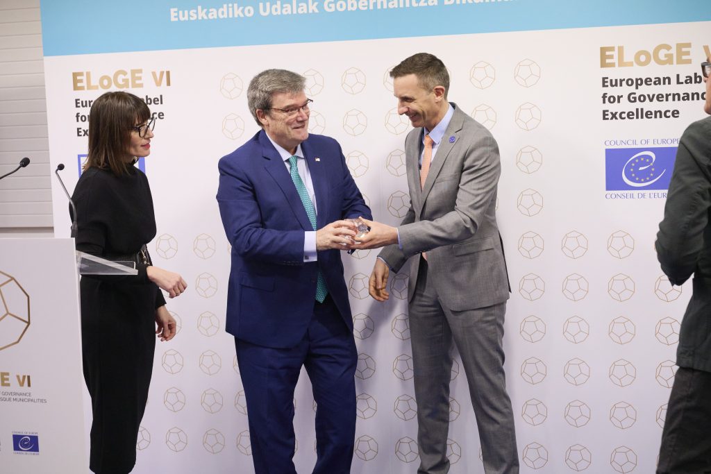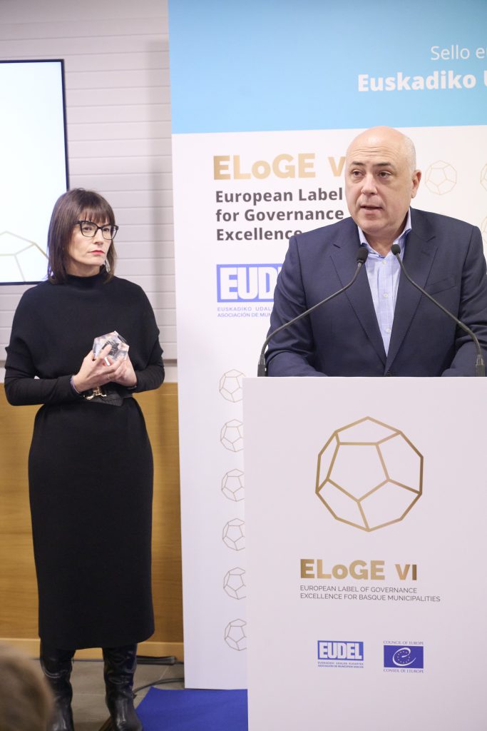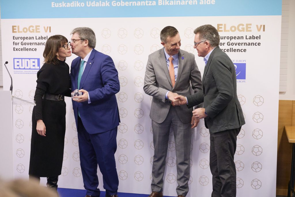 Gaur goizean, EUDELen Bilboko egoitzan, aintzatespen-banaketa egin da, eta bertan izan dira Errenteriako alkate Aizpea Otaegi, Bilboko alkate Juan Mari Aburto, Leioako alkate Iban Rodriguez, Tolosako alkate Andu Martinez de Rituerto eta Urretxuko alkate Jon Luqui. Ekitaldiaren buru Esther Apraiz EUDELeko elkarteburua eta Mathieu Mori Europako Kontseiluaren Tokiko eta Eskualdeko Botereen Kongresuko idazkari nagusia izan dira. Eusko Jaurlaritzak eta hiru foru-aldundiek ere babesten dute proiektua, eta sari-banaketan parte hartu dute: (Eusko Jaurlaritza) Xabier Ochandiano, Gobernantza, Administrazio Digitala eta Autogobernuaren Sailaren Erakunde Harremanetarako sailburuordea; (GFA) Irune Berasaluze, Gobernantzako foru-diputatua, eta Mikel Pagola, gobernu oneko zuzendaria; (BFA) Imanol Landa, udal harremanen zuzendaria, (AFA) Javier Gorbeña, Lurralde Orekaren zuzendaria. Agintariek udalak zoriondu dituzte udal gobernuaren eta kudeaketaren kalitatea etengabe hobetzeko “anbizio eta konpromisoagatik”.
