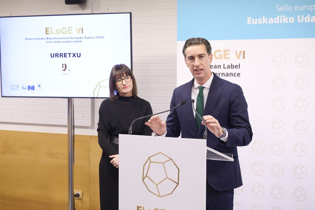 Bilbon, 2026ko otsailaren 5ean. EAEko udalek Europan duten lekua indartzen jarraitzen dute kalitate demokratikoari eta gobernu onari dagokienez. EUDELek eta Europako Kontseiluak sustatutako Gobernantza Bikaintasunaren Europako Zigiluaren (ELoGE) VI. edizioak berretsi egiten du parte hartzen duten udalerriek lerrokatze-maila handia dutela berrikuntza demokratikoko eta kudeaketa publiko efiziente eta jasangarriko Europako estandarrekin.