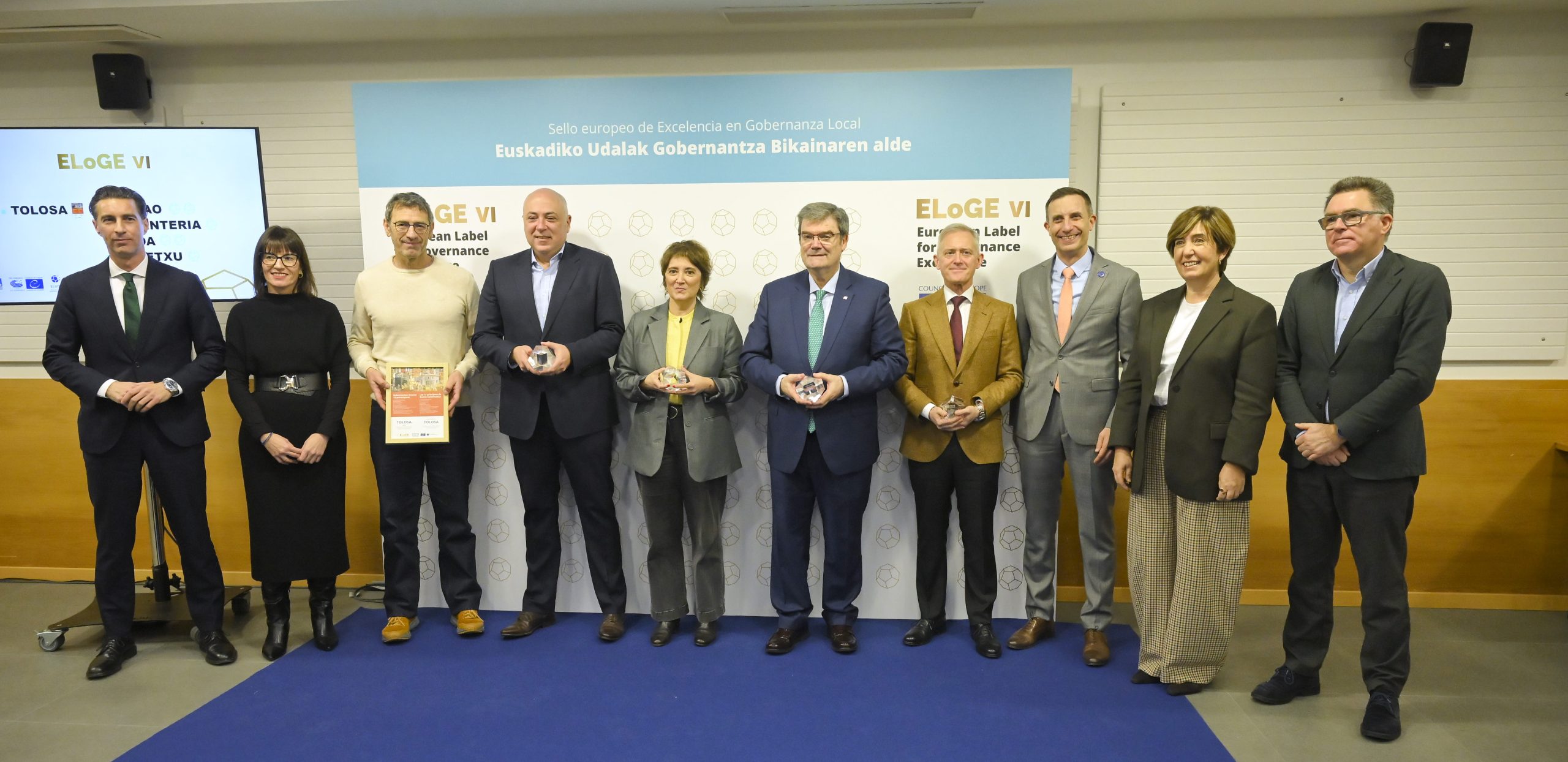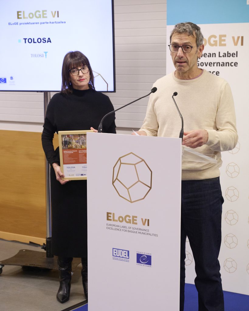 - BILBOk, LEIOAk, ERRENTERIAk eta URRETXUk Europako Kontseiluaren Gobernantza Bikaintasunaren Zigilua (ELoGE) lortu dute. TOLOSAk gobernu onaren printzipio europarrekiko konpromisoa berretsi du.