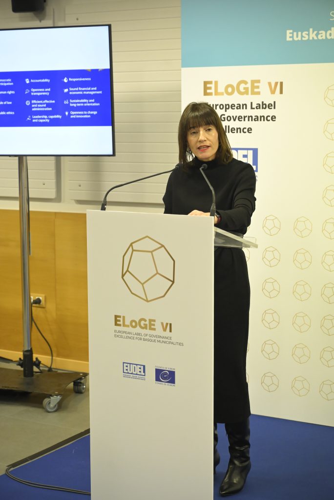 EUDELeko elkarteburu Esther Apraizek azpimarratu duenez, “ELoGE Zigilua aintzatespen bat baino gehiago da, politika eta zerbitzu publiko hobeagoak eskaintzeko eta gure herri eta hirietan bizi-kalitate handiagoa lortzeko tresna praktikoa da”. Apraizek baieztatu duenez, “polarizazioaren eta autoritarismoaren aurrerapenaren aurrean, euskal udalok Europako balioekin eta gobernu onaren printzipioekin bat gatoz. Alkateok demokrazia defendatzeko lehen lerroa gaude Europan, eta orain, inoiz baino gehiago, gobernantza kolaboratiboa indartu behar dugu, tokiko politikan eta komunitatean parte hartzen duten herritar informatuak eskutik hartuta”.