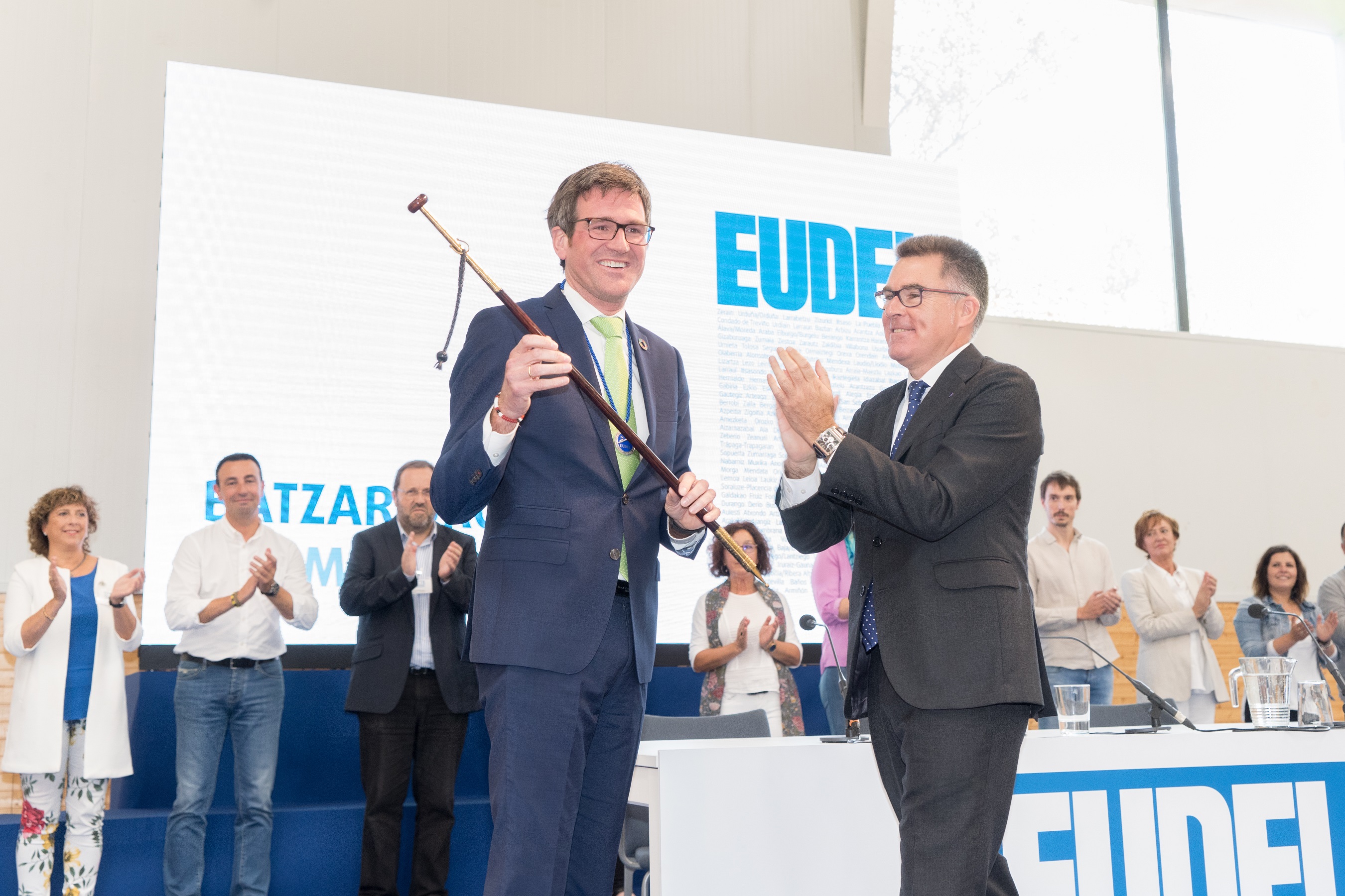Gorka Urtaran, Vitoria-Gasteizko alkatea hautatu dute bazkideek, EUDELen Elkarteburu izateko. Horretarako gehiengo kualifikatua eskuratu du. Urtaranen ondoan elkarteburu izango dira Irungo alkate Jose Antonio Santano eta Azpeitiko alkate Nagore Alkorta.