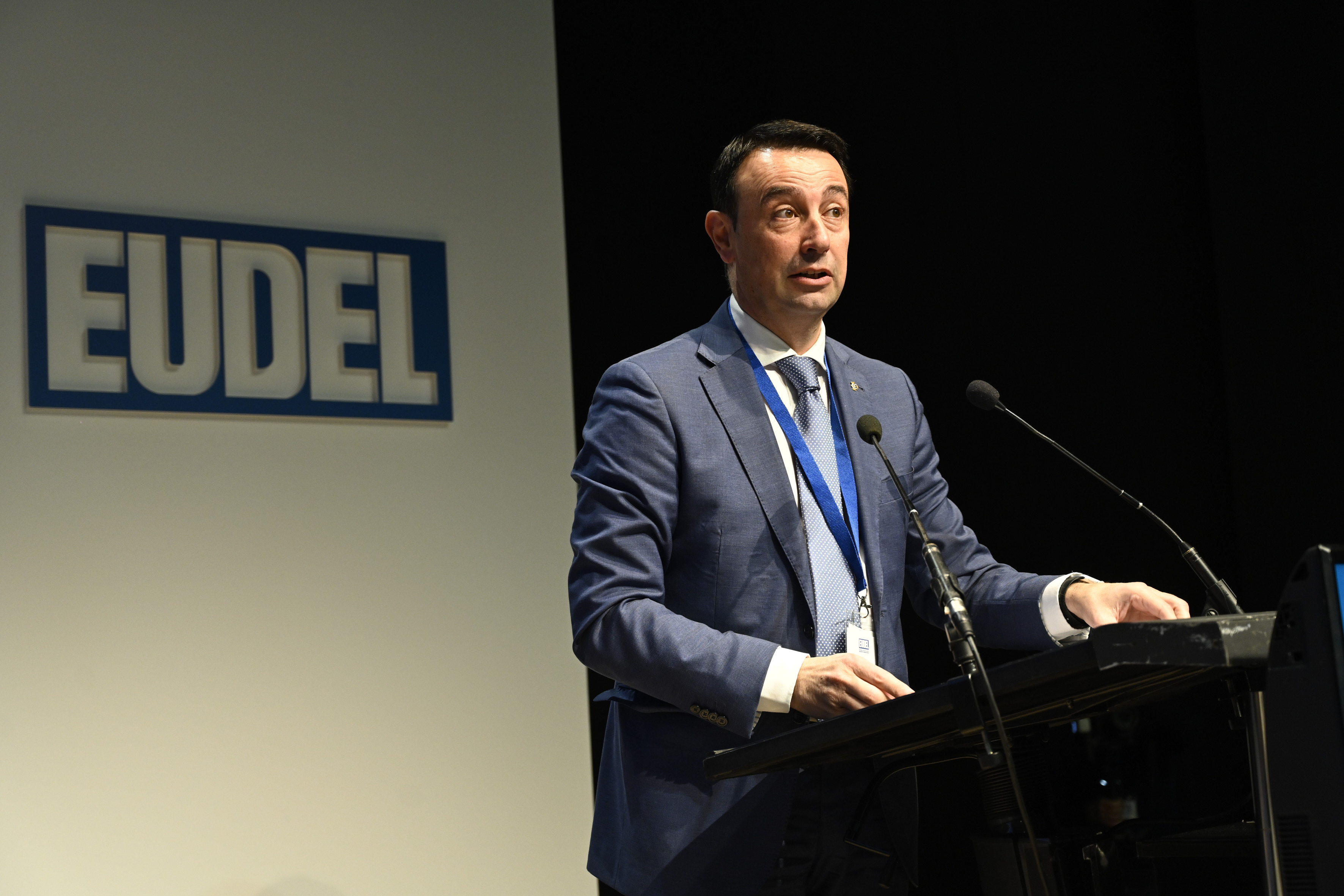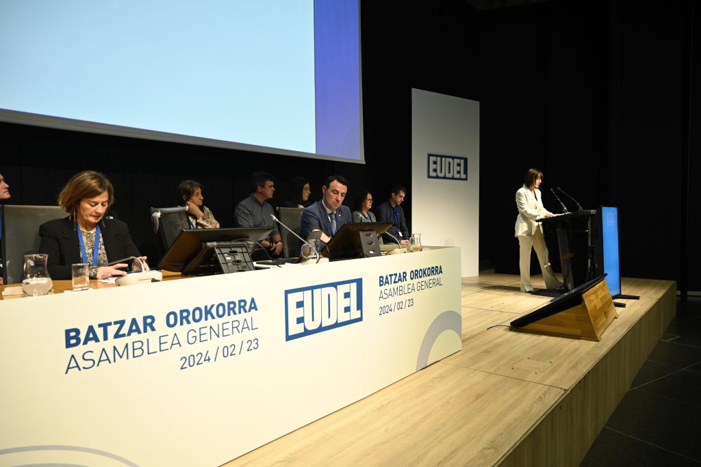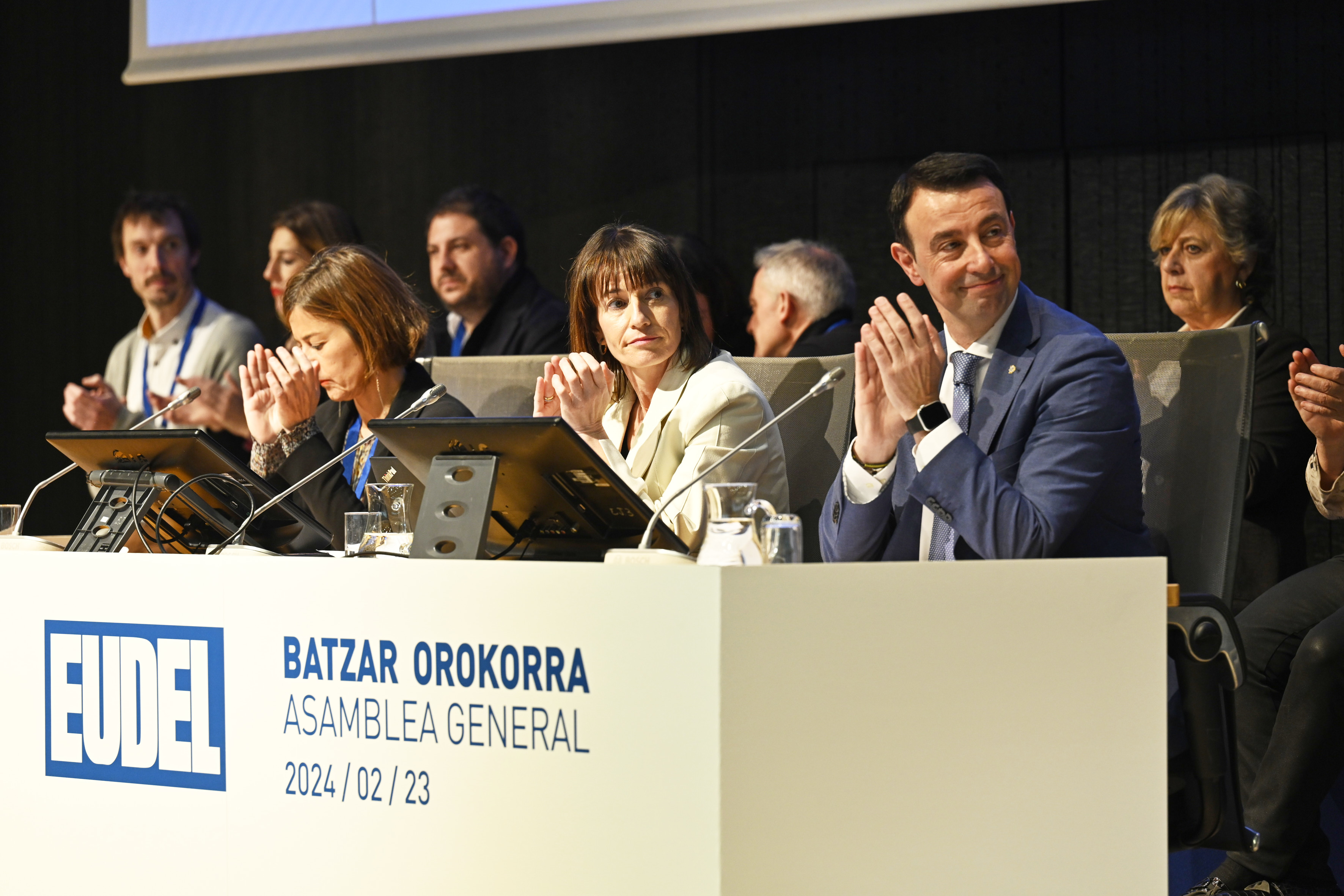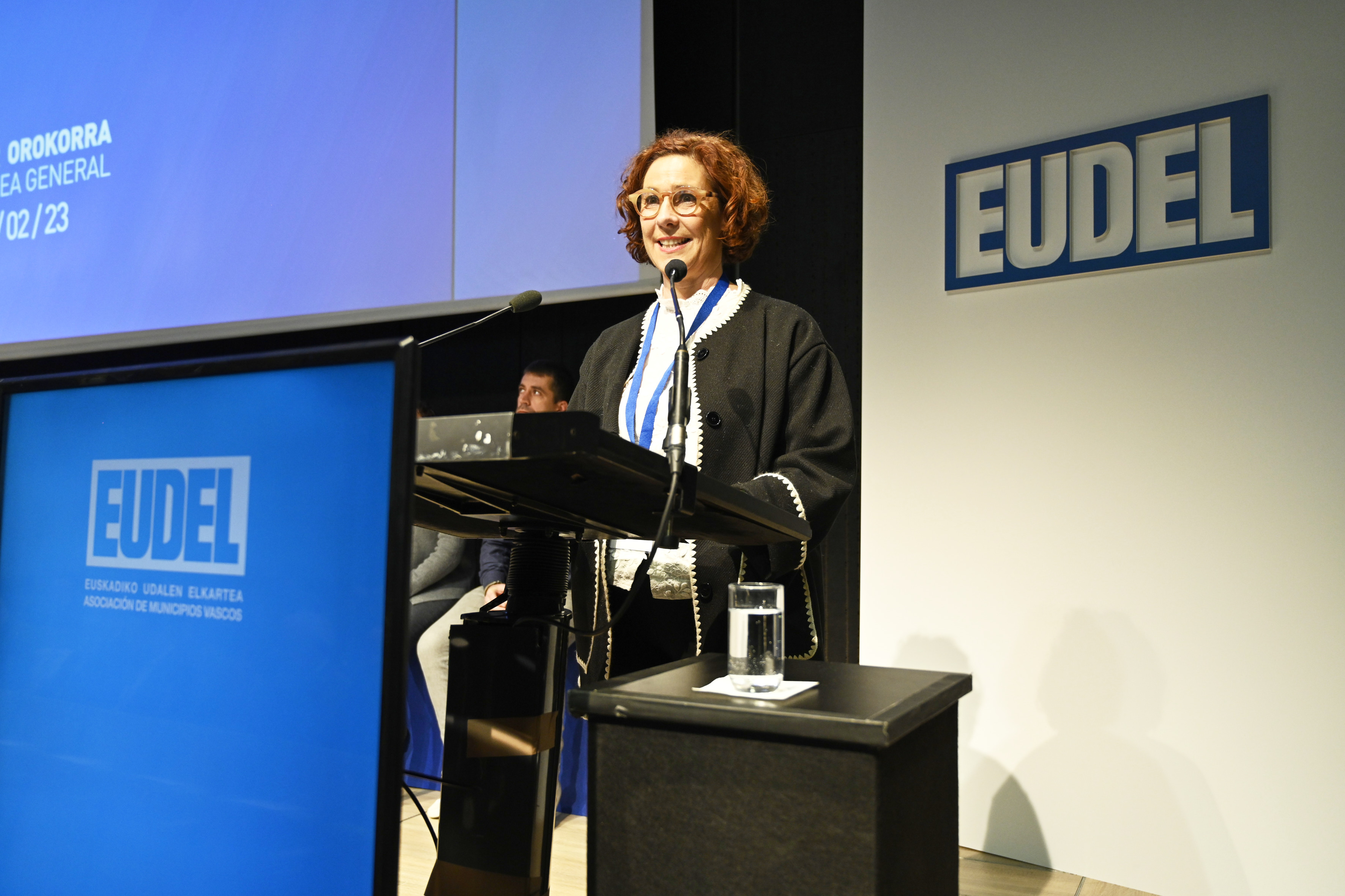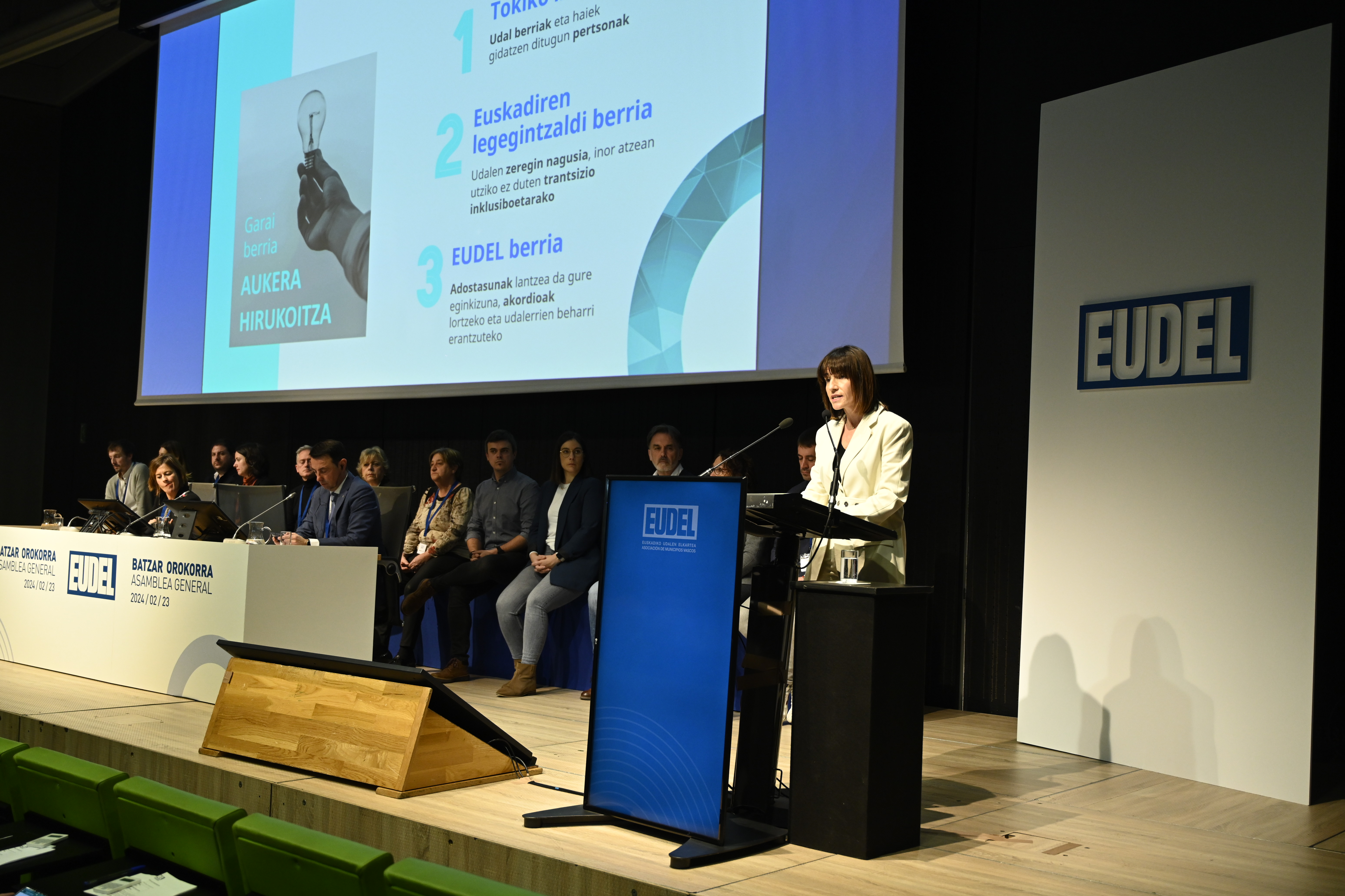 Batzarreko bere hitzaldian, EUDELeko elkarteburuak “tokiko lidergoa” euskal gizartearen zerbitzura jartzeko deia egin die euskal udalei, “erakundeen lankidetzatik, transakzio handietan, sozial-demografiko, digital, ekologiko eta feministetan laguntzeko”.