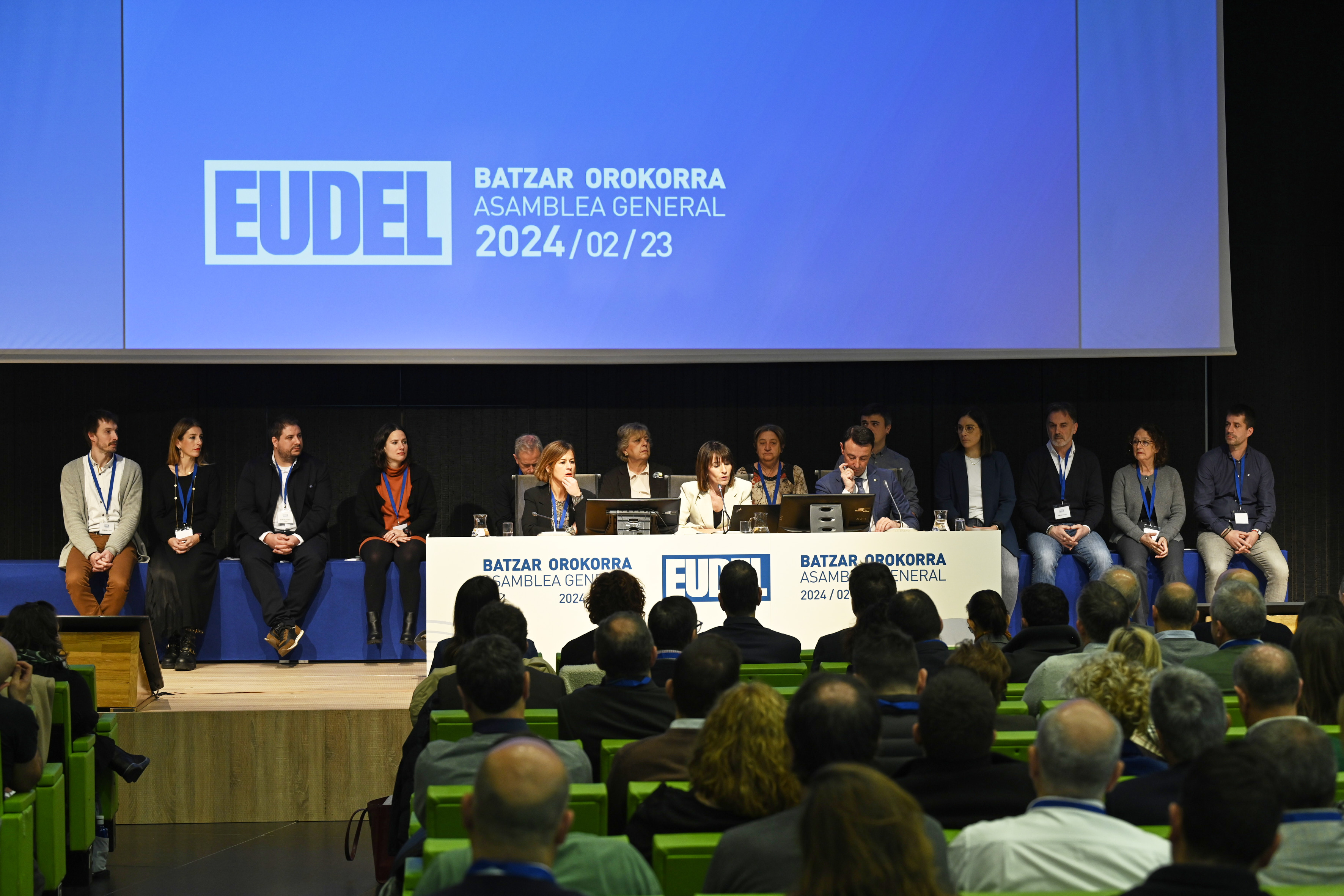 Bilbon, 2024ko otsailaren 23an. EUDELeko Batzar Orokorrak EAE osoko alkateak bildu ditu, gaur goizean, Bilboko Euskalduna Jauregian. Agintaldi berriaren lehen Batzar Nagusia da, iazko irailean Donostian hautatutako Batzorde Betearazlea buru duena.