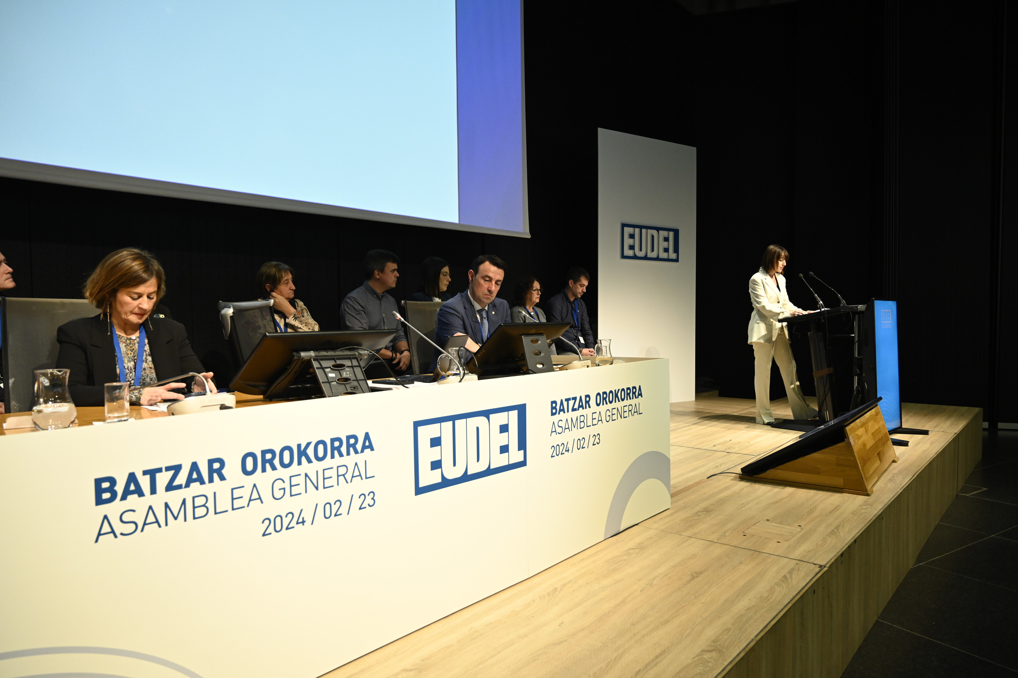 Esther Apraizek, EUDELeko presidente eta Derioko alkateak, oso positibotzat jo du, EUDELen Batzarraren gehiengoaren babesarekin, Elkartearen 2024ko ekitaldirako aurrekontua onartu izana, 3,7 milioi euro guztira. “Pozten gara Elkartearen jarduerari eusteko eta udalerriei agintaldi berri honetarako lehentasunezko helburuetan laguntzeko aurrekontu estrategiko batzuk aurrera ateratzeagatik. Horrek erakusten du EUDELen heldutasuna eta Euskadiko tokiko erakundeen interes komunen alde lan egiteko borondatea, herritar guztientzako onuragarria izan dadin”.