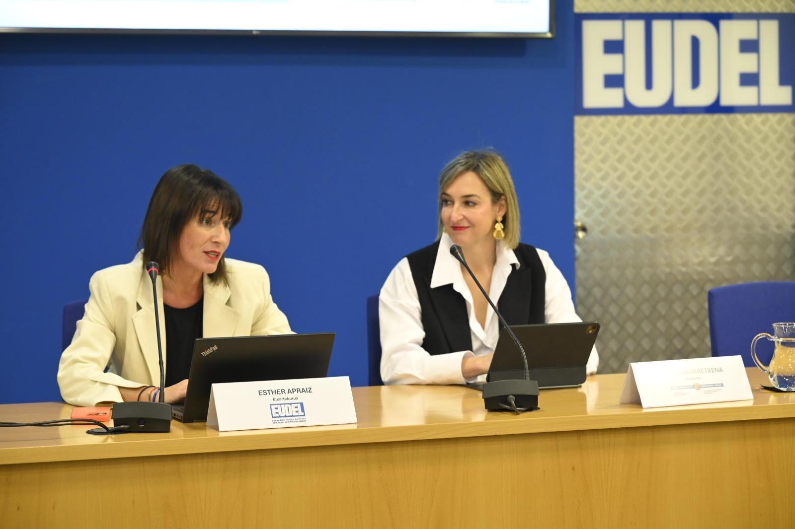 Bilbo, 2024/11/13a. Esther Apraiz EUDELeko elkarteburu eta Derioko alkateak, Maria Ubarretxena Gobernantza, Administrazio Digital eta Autogobernuko sailburuak eta Conrad Zellmann Europako Kontseiluko ordezkariak “Tokiko Gobernantzako esperientzia eta jardunbide aurreratuak” jardunaldia aurkeztu dute gaur goizean, euskal udaletako hautetsiei eta teknikariei zuzenduta.