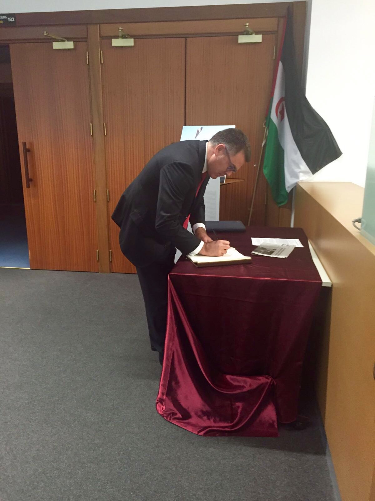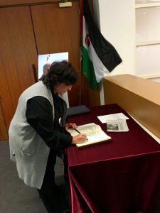 Vitoria-Gasteizen, 2016ko ekainaren 2an. Imanol Landa Getxoko alkateak, EUDELen elkarteburu moduan, eta Maite Etxebarria Abanto-Zierbenako alkateak, EUSKAL FONDOAren presidente moduan, azken agurra eman nahi izan diote Mohamed Abdelaziz liderrari. Horregatik, gaur goizean Gasteizera etorri dira biak, Euskadiko Saharako Ordezkaritzaren eta SEADen Lagunak elkartearen ekimenez atzodanik Florida Parkeko Kultur Etxean herritarren eskura dagoen Doluminen Liburuan sinatzera.