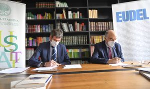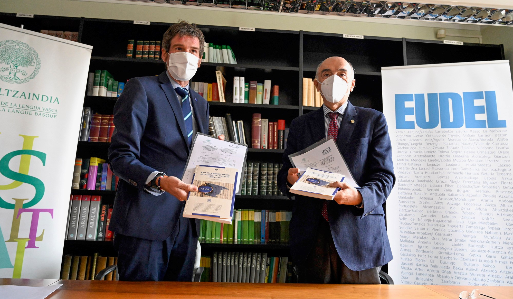 BILBO (2021-07-28). Euskadiko Udalen Elkarteak (EUDEL) eta Euskaltzaindiak hitzarmena berritu dute gaur, Akademiaren egoitza nagusian. Hitzarmenaren xedea Euskadiko toki erakundeei laguntza teknikoa ematea da, batez ere, Onomastika alorrean. Hau da, industrialdeen, auzo berrien, bizitegi-unitateen, naturaguneen, parkeen, atsedenlekuen, zerbitzuguneen, katalogatutako udal-mendien eta abarren leku-izenei buruzko aholkuak ematea, bai eta toki-erakundeok zeinek bere lurralde-esparruko toponimia-azterketa luze-zabalagoak egiteko baliatu behar diren jarraibide eta irizpide orokorrei buruz ere.