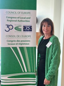 Estrasburgon, 2024ko irailaren 13an. Esther Apraiz EUDELeko elkarteburu eta Derioko alkateak Europako Kontseiluak irailaren 12 eta 13rako deitutako bileran parte hartu du, Demokraziaren Nazioarteko Egunarekin bat eginez, tokiko agintariek “kontinentearen egonkortasun demokratikoari” egindako ekarpena aldarrikatzeko. Tokiko eta Eskualdeko Botereen Kontseiluak Estrasburgon duen egoitzan tokiko eta eskualdeko gobernuen 110 elkarte inguruk hartu dute parte.