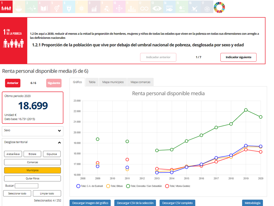 Hortik lortutako informazioak, udalerri mailako banaketara heltzen denak, Garapen Iraunkorrerako Helburuetarantz aurrera egiteko herrialde ikuspegia erakutsiko du. Gainera, Europa eta mundu mailako eskualdeetako eta udalerrietako beste errealitateekin aldera ahal izango da.