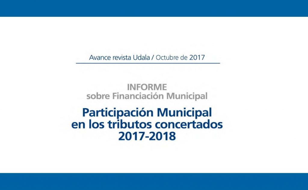 EUDEL pone a disposición de los ayuntamientos vascos el Informe de Financiación Municipal elaborado por esta Asociación sobre la ‘Participación municipal en los tributos concertados 2017-2018’. Dicho informe pretende servir como adelanto de la información que será publicada en un próximo número de la revista UDALA (noviembre), y que como viene siendo habitual se enviará a los municipios en formato electrónico y en papel, a lo largo de las próximas fechas.