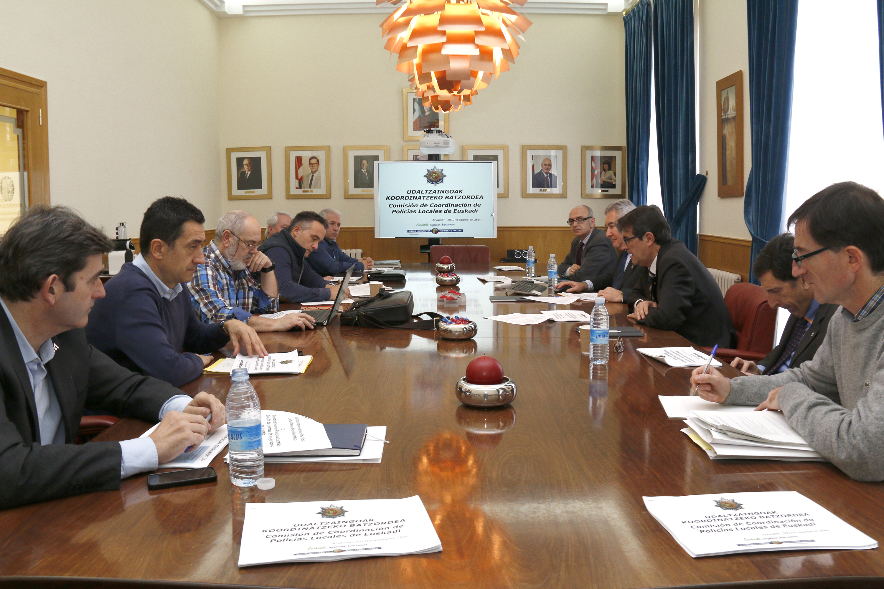 Bileran izan dira Segurtasuna Koordinatzeko zuzendari Rodrigo Gartzia; Ertzaintzaren zuzendari Gervasio Gabirondo; Araubide Juridikoaren, Zerbitzuen eta Hauteskunde Prozesuen zuzendari Eugenio Artetxe; Segurtasuneko zinegotziak, Carlos Zapatero (Gasteiz) eta Martín Ibabe (Donostia); eta EUDELen izenean, Mungiako alkate Ager Izagirre, Erandioko alkate Joseba Goikuria, Laudioko alkate Natxo Urkixo eta Amurrioko zinegotzi Alberto Artetxe; eta sindikatuak ordezkatuz ELAko Roland Estebanez.