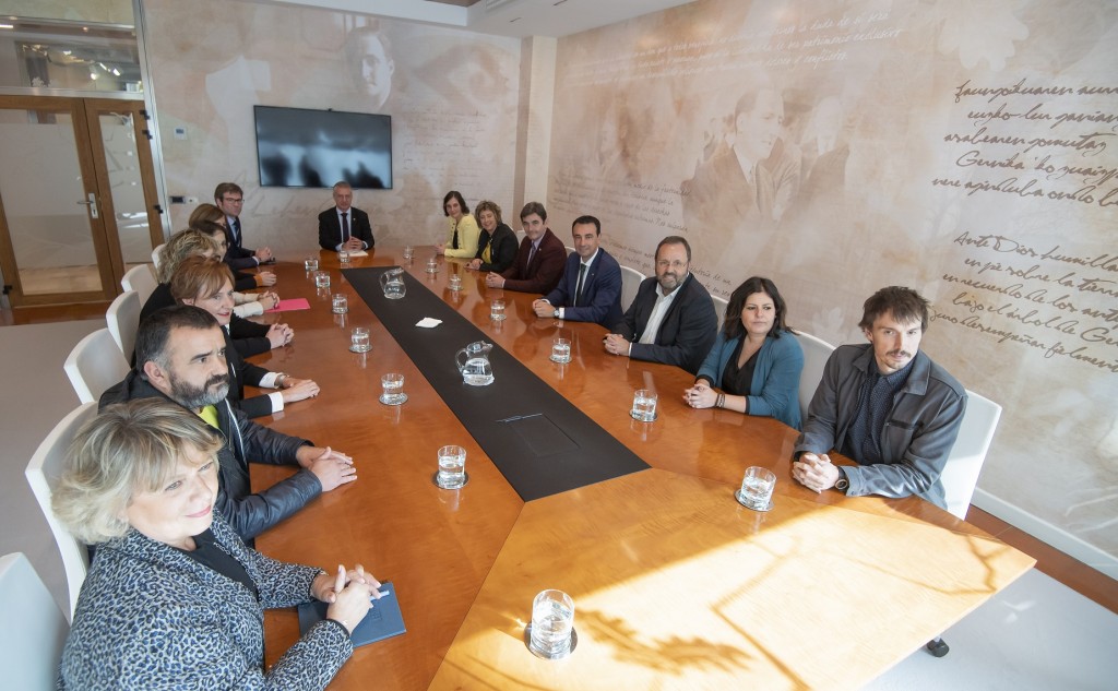 Vitoria-Gasteiz, 15 de octubre de 2019. El lehendakari Iñigo Urkullu ha recibido esta mañana en la sede de Lehendakaritza a la Comisión Ejecutiva de EUDEL, encabezada por su presidente, Gorka Urtaran, con motivo de la reciente renovación de sus miembros el 19 de septiembre en la Asamblea General de Elgoibar.
